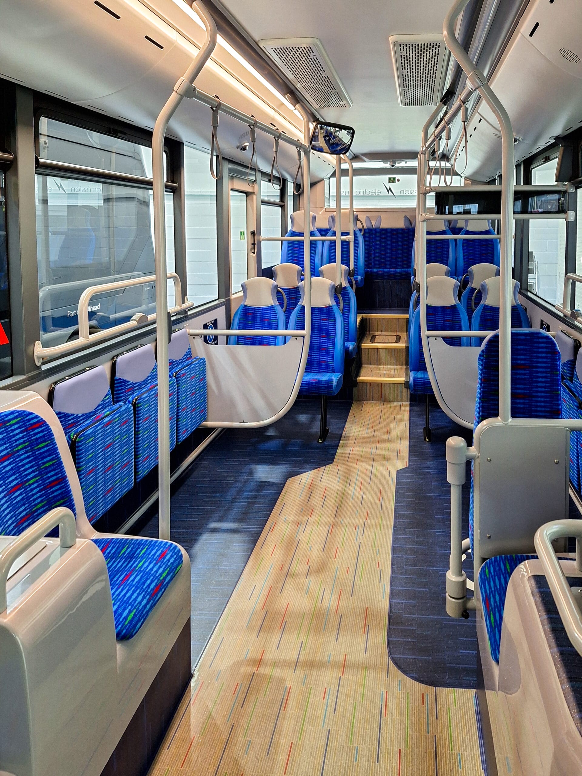 There are USB charging points at all seats, and the buses are fully PSVAIR-compliant, with next-stop audio/visual announcements, audio loops, and a dementia-friendly internal colour scheme.